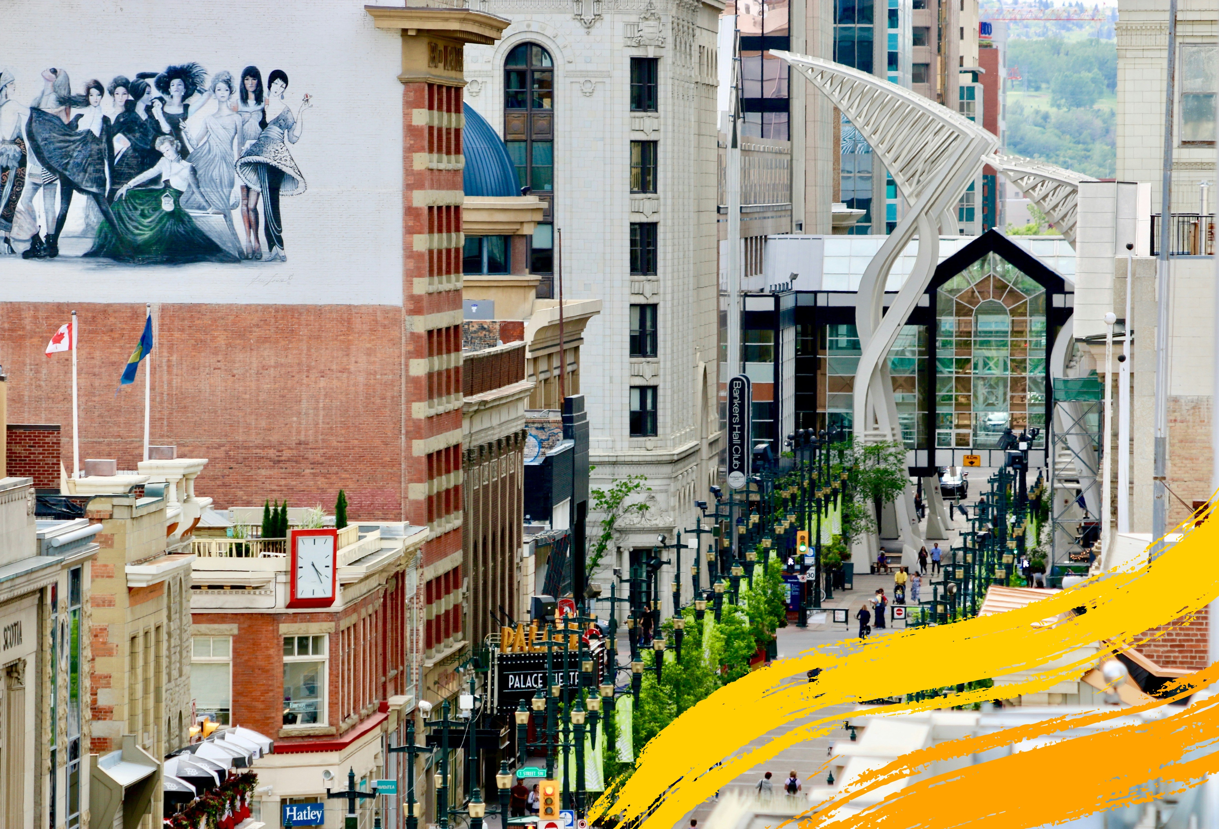 Downtown Calgary features the +15 network, an elevated walkway system approximately 15 feet above street level that connects dozens of buildings. Offices, restaurants, and shops are linked together, allowing people to move around without going outside.