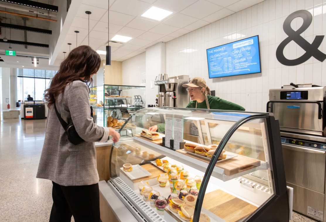 Haskayne Food Hall is an excellent place to grab food and coffee! Especially for students in Mathison Hall! The Market has a popular UCalgary alumni-run business, Phil & Sebastian. They also have fresh smoothies and homemade grab-and-go sandwiches and wraps for your busy days! Hot Seat serves hot made-to-order breakfast, burgers, fries and more. While you're in Mathison Hall, don't forget to check out the self-serve ice cream machine right outside the food court!