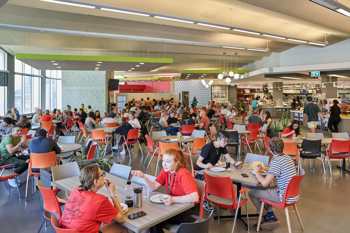 UCalgary has an incredible selection of places to eat on campus—from indoor dining, to outdoor lounge style patios, quick eats, classic cafés and cozy comfort food options, there's something for every occasion! There's options for all forms of dietary restrictions: if you're vegetarian, vegan, gluten-free or eat halal or kosher, don't worry—there will be options for you to choose from! The food courts and restaurants serve as a place for getting your refreshments, but more importantly, it serves as a place for you to hangout with friends, maybe even make some new friends, get some studying done and so much more!